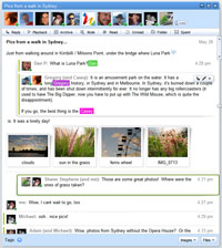 Messages can include photos, video and audio, which can be simply added via drag and drop. All participants of the Wave can collaborate to change titles of pictures or videos. Also text content can be edited in wiki-style by anyone participating in the conversation. Each comment is outlined and tagged with the users individual color to make complex conversations relatively clear.